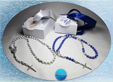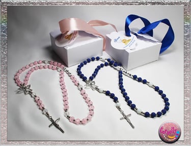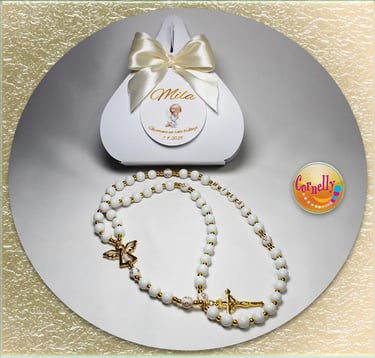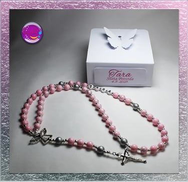 Unikatno ručno izrađene krunice - dar s posebnim značenjem. Simbol duhovnog jedinstva za vaš poseban dan. Ova personalizirana krunica s imenom i datumom savršen je dar za prvu pričest i krizmu ali i vjenčanje i druge prilike kao simbol ljubavi i duhovnosti. Poseban poklon za važne trenutke u vjeri.