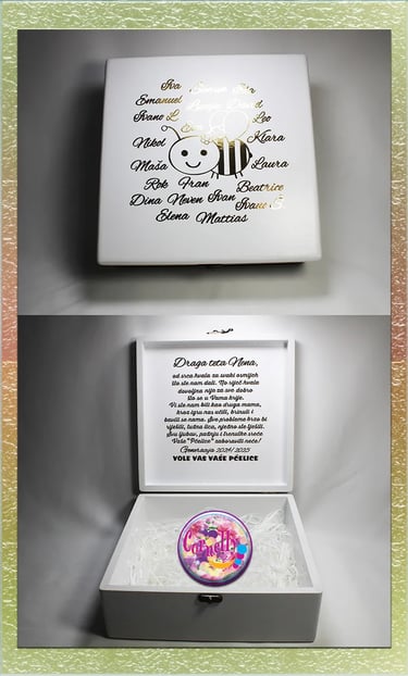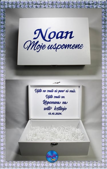 Personalizirana kutija uspomena za rođenje, krštenje, rođendan. Najljepše uspomene zaslužuju posebno mjesto! Kutija uspomena – čarobno mjesto za prve godine života, sačuvano za cijeli život!